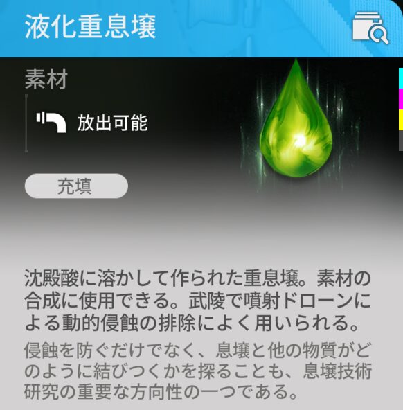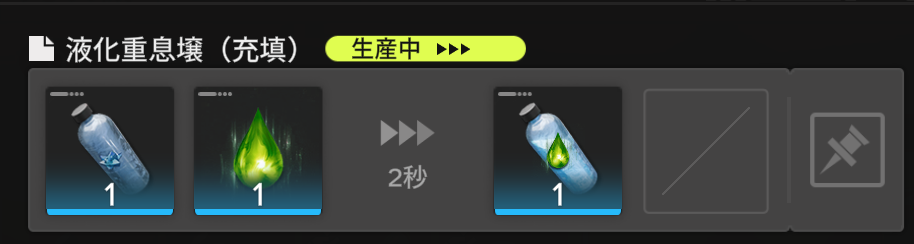 生産中の化学反応炉にてレシピを確認しますと、『液化重息壌(充填)』が生産中になっていますね!