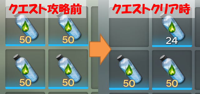 今回のクエストのために、筆者はボトルを200コ準備しました。