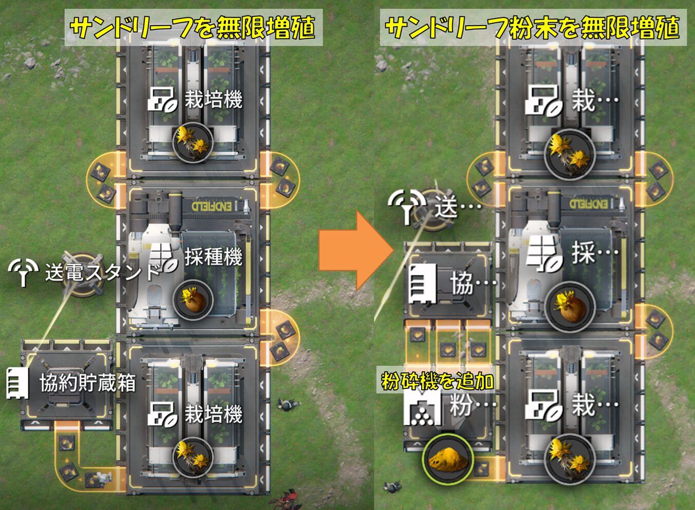 そこで、工業の力を使ってサンドリーフを『無限増殖』させましょう。