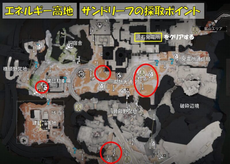 ちなみにですが、サンドリーフはエネルギー高地以外に、別地域の『武陵』でも採取できます。