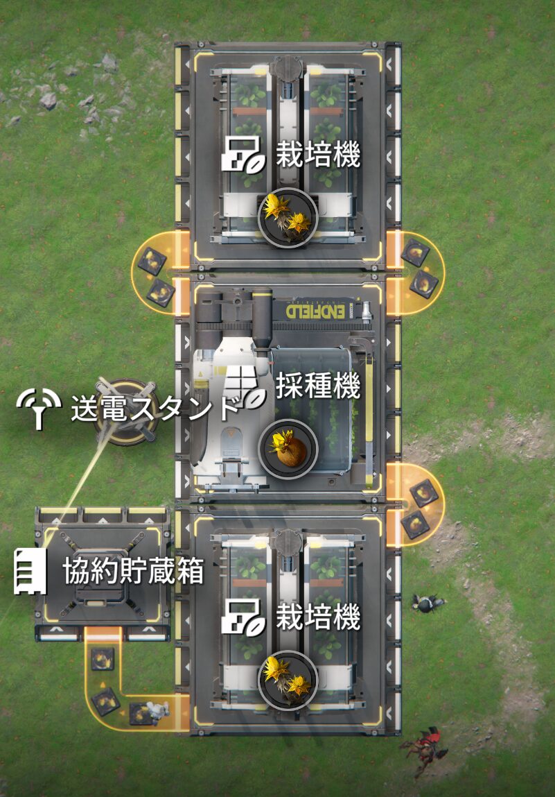 植物の無限増殖の生産ラインは、倉庫連結ハブへの接続が不要なので配置場所も自由で使いやすいですね。