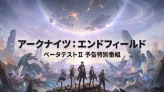 アークナイツ:エンドフィールド『アークナイツ:エンドフィールド』ベータテストⅡ 予告特別番組まとめ【アークナイツ:エンドフィールド#001】 この記事では、2025年10月31日に配信された『アークナイツ:エンドフィールド』ベータテストⅡ 予告特別番組をまとめています。動画の時間は1時間6分。※そのうち、本編は約50分。動画のリンクはこちら。今回の配信で明かされた内容は、単なるア... 2026.01.15アークナイツ:エンドフィールド